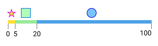 Going back to the example in the previous section — 'Non-technical overview'. — the supply of the reward units in the relevant set of packs - 80 circles, 15 squares, and 5 stars - can be represented on a number line, from zero to the total supply of packs - in this case, 100.